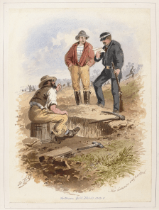 Having navigated a morning by the fire, you head into town. The opening sketch by artist Samuel Thomas Gill’s of the arriving carriage in town highlights some of the dangers in town. Roads were busy, muddy, and dirty. There was no dodging the sludge in the road, you could find yourself wading in it some days! Being run over by a carriage was a very real risk.