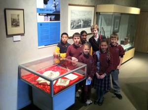 Ballarat students examining  the contents of the Time Capsule on display at the Gold Museum