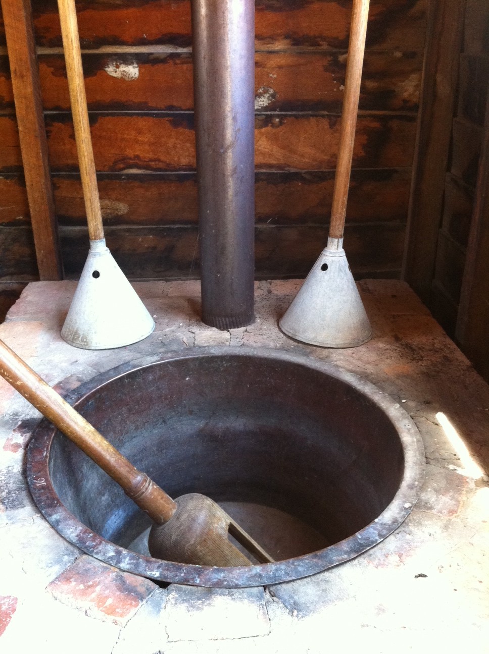 Copper and wooden dollie – in cottage laundry at Sovereign Hill