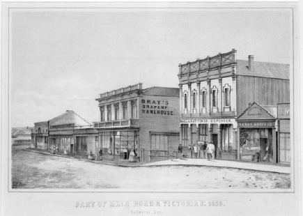 Lithograph of Spencer's Confectionery in Main Street by Francois Cogne (Gold Museum Collection)