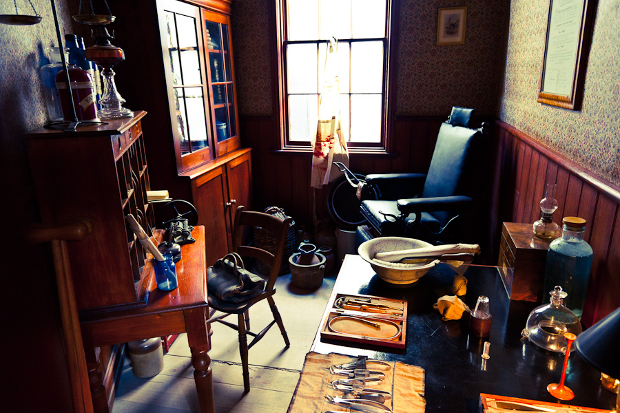 Some doctors had their own rooms where they could see and treat sick diggers and their families. One such was Dr. Wakefield. He emigrated from England in 1853 at the age of 28. George Wakefield was a trained Apothecary, like his father, and had run a successful business in London before moving to Australia. He ran a practice at Emerald Hill, Melbourne until 1856 when he moved to Ballarat. Here he worked as a dispensing chemist and doctor, until he moved to Kerang in the 1870’s. Sovereign Hill has re-created Dr. Wakefield’s consulting room at the back of Robinson’s and Wayne’s Apothecary. It is well worth a visit to look at some of the gruesome tools of his trade.
