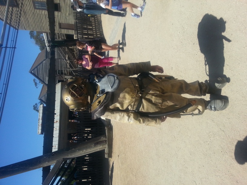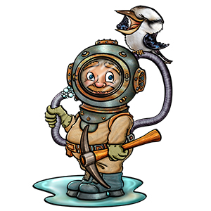 Why would there be a deep sea diver walking around a goldfield over 100km from the coast? The story behind this event is incredibly sad. On the 12th of December 1882, the New Australasian Mine at Creswick was involved in the worst gold mining disaster in Australian history to this day. On that day a huge amount of water broke through into the number 2 drive from old workings. 41 men were working underground at that time, 27 were trapped by the water, and 22 would lose their lives before a successful rescue could be coordinated. In response to a telegram, the Minister for Mines sent up a fast train; on board were four divers from the HMVS Cerberus, bringing with them the hope that they could take air to the trapped miners. This hope was misplaced. The divers arrived at 6.00am in the morning, but the pipe sent with them measured only 100 feet. At least 1500 feet was required! As well, the apparatus which had been sent was not powerful enough to pump the air 2000ft along the shaft. More calls were put out for help, and a second train, loaded with equipment, broke all records from Melbourne to Creswick. Imagine the dismay when the rescuers found that the lengths of hose which had been sent only measured about 300 feet – still nowhere near long enough to reach the trapped men! The last straw came when the divers, still trying to be of some assistance, put on their gear, only to find that the suits supplied were the wrong size! Had the right length of hose (There wasn’t enough hose in the entire colony anyway!), and correct equipment been sent with the divers in the first place, it was believed that a precious twenty-four hours would have been gained, and possibly more lives saved. The story of the
