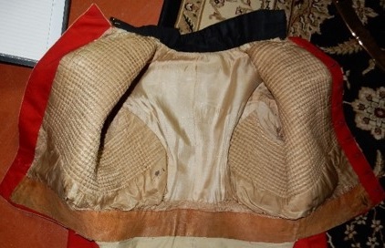 This very old, fragile coatee also helped us understand what the lining and internal structure of the coatees should be, which not only makes them more comfortable for the people wearing them, but also makes those people look more muscular and broad-shouldered.