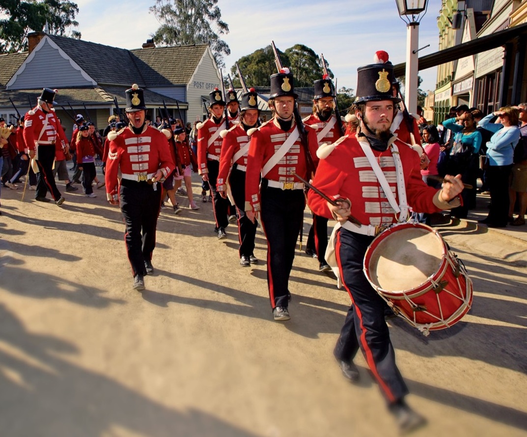 Sovereign Hill’s Redcoats firing their guns: https://www.youtube.com/watch?v=loLdcXa0_w8