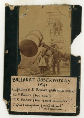 His daughter Elizabeth Baker became a photographer and astronomical assistant at the observatory, down the road from where Sovereign Hill is situated in Golden Point. In 1896, the Ballarat Star noted that Miss Baker had taken charge of the observatory, the meteorological equipment and was contributing to international research projects and winning awards for her astronomical photography2. When her young niece, Effie, came to live with the family she gifted her a camera and mentored her in photography. Both Elizabeth and Euphemia were noted for their photography, including photos of the moon and stars taken through the telescope.
