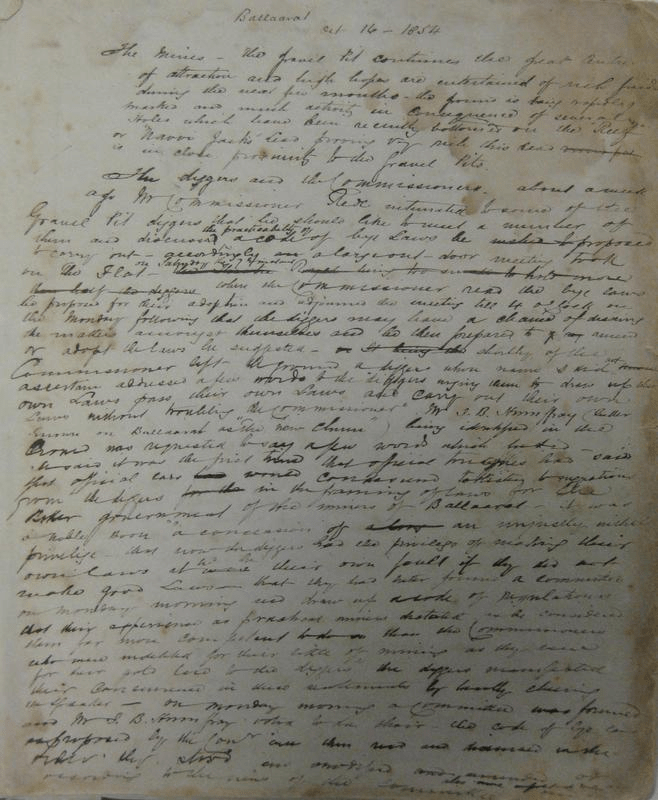 Pictured: page from J.B. Humffray’s Journal 1853-54. Sovereign Hill Museums collection.