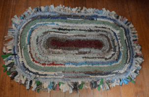 Clothing is handmade and will be mended, altered and passed down, sometimes several times, before it is replaced. Fabric scraps could also be used in toy making, like peg dolls, and even used as toilet paper. This is a rag rug made from offcuts of clothes being made or rags from old clothes being torn up. It provides some insulation on the floor, a way to practice a skill and a second life for what would otherwise be waste pieces of fabric.