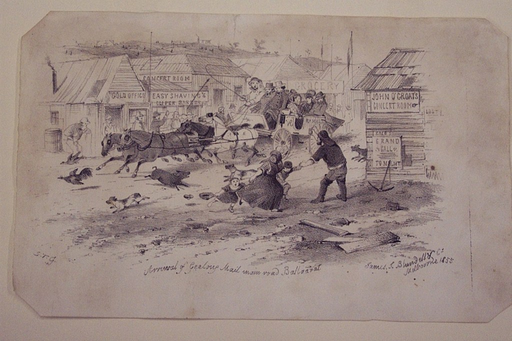 Having navigated a morning by the fire, you head into town. The opening sketch by artist Samuel Thomas Gill’s of the arriving carriage in town highlights some of the dangers in town. Roads were busy, muddy, and dirty. There was no dodging the sludge in the road, you could find yourself wading in it some days! Being run over by a carriage was a very real risk.